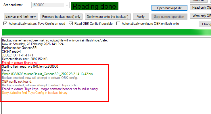 As a result of this observation, I added to my BK7231GUIFlashTool (aka Easy Flasher - yes, the name needs to be changed) the ability to read Flash bypassing ID verification and with a manual declaration of the expected size.