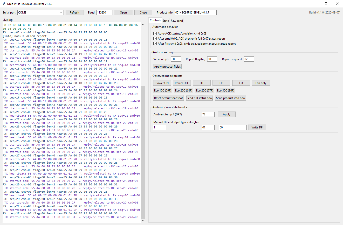 We know these are NOT Tuya/TuyaMCU, but from the GitHub dreo-cloudcutter https://github.com/ouaibe/dreo-cloudcutter, which did this for a tower fan from Dreo, we know they use OpenBeken-compatible modules. And they use UART towards an MCU. So close enough.