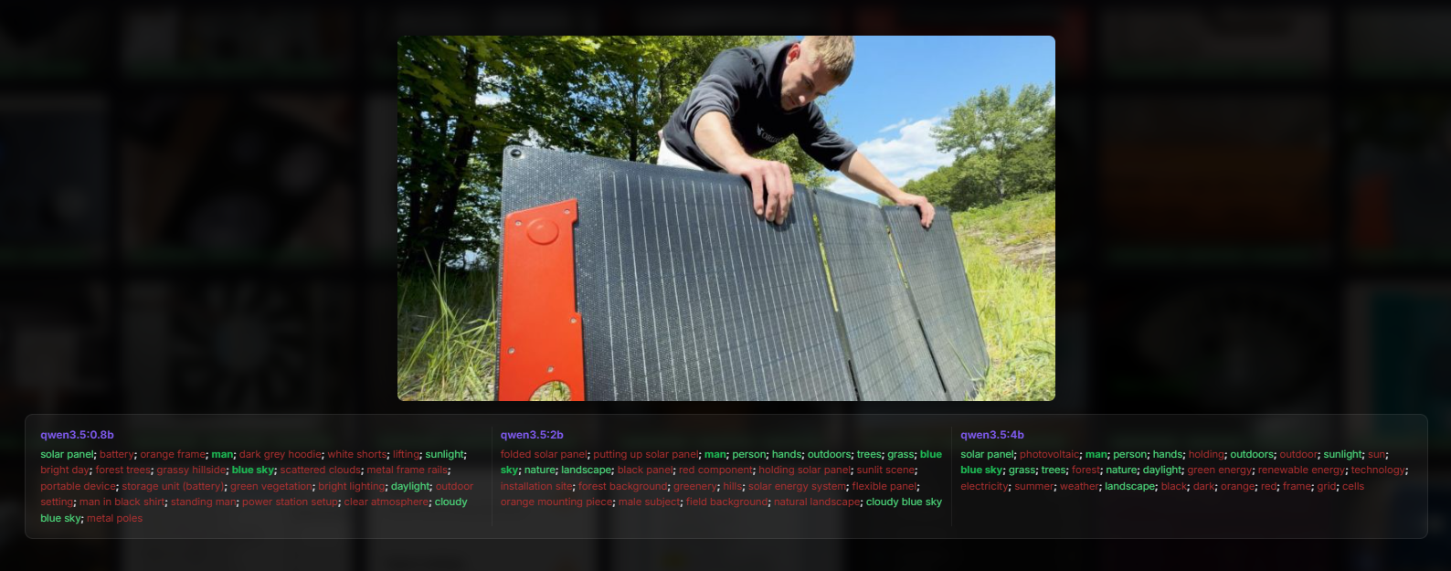 Apart from that, you can see that many of the tags are quite accurate and correct. Obviously the tags from qwen3.5 are not much better than those from gemma3, llava or minicpm: