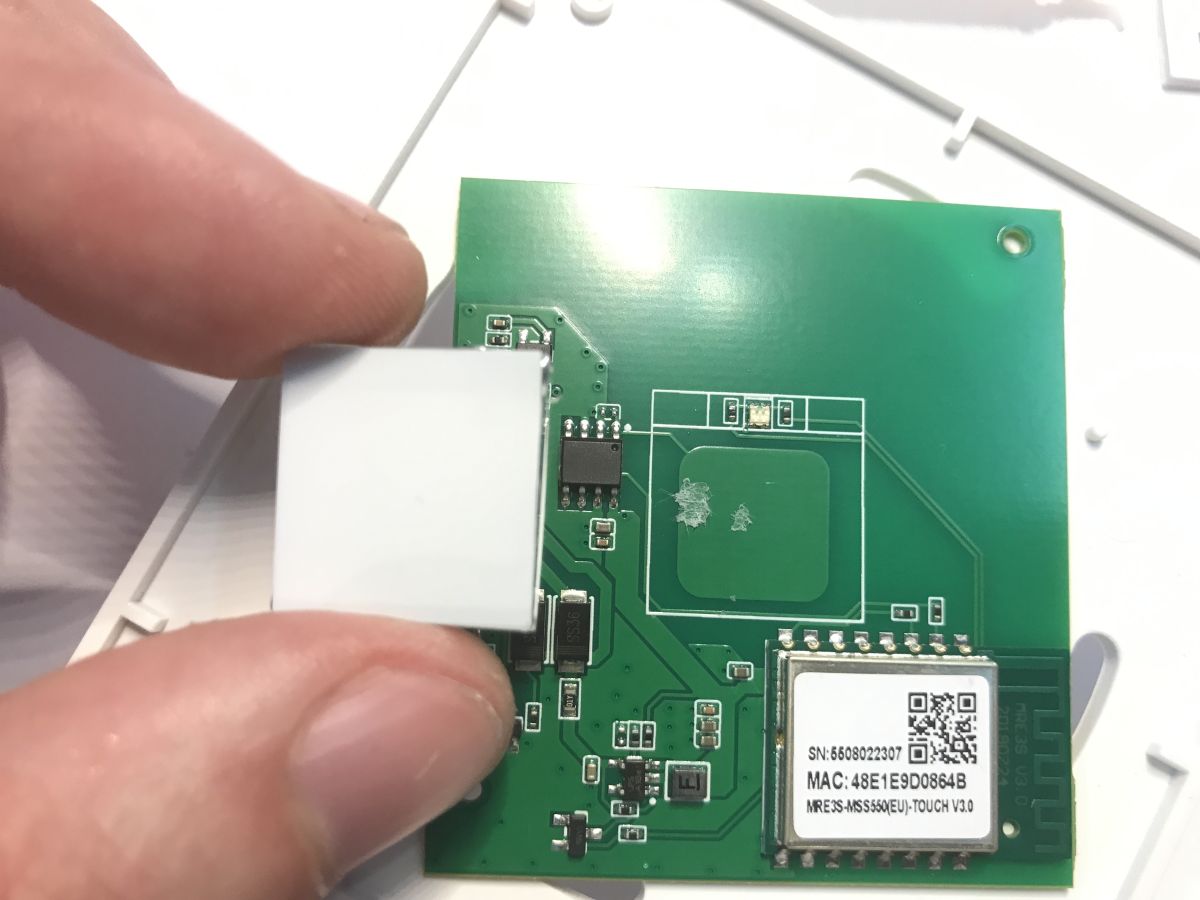 The Wi-Fi module therefore needs to be soldered out. Rather only hot air comes into play, but first you need to remove the component from the touch button, which is easy to melt. Simply peel it off.