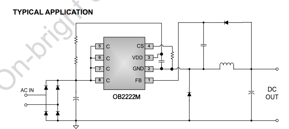 The whole is powered by a non-isolated inverter based on the OB2222MCP. It generates 5 V. There is also a fuse and varistor in the circuit.