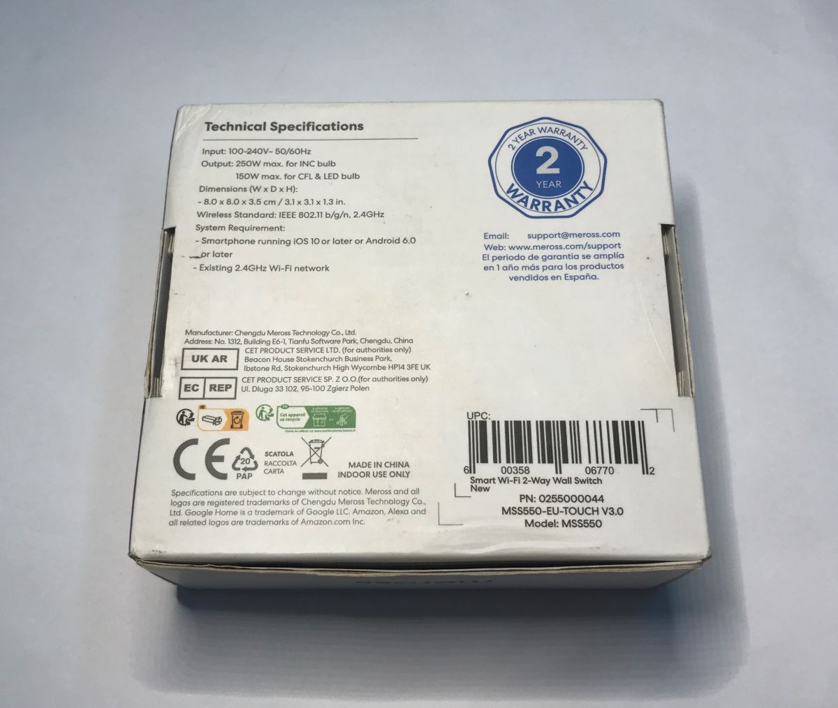 The full model name is in both cases MSS550-EU-TOUCH V3.0. There is also a US version, but it is for this "rectangular" box. How to connect the switch is specified in the manual: