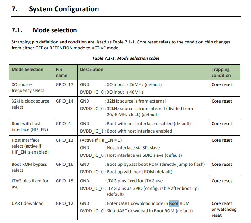 The serial option looks promising. So we are interested in the HIF_EN (GPIO_4) and HIF_SEL (GPIO_13) pins. These are available on the MRE3S pads.