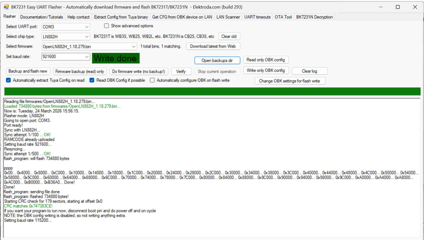 Soldered it to a flasher (from left to right - Vcc, GND, Rx, Tx):