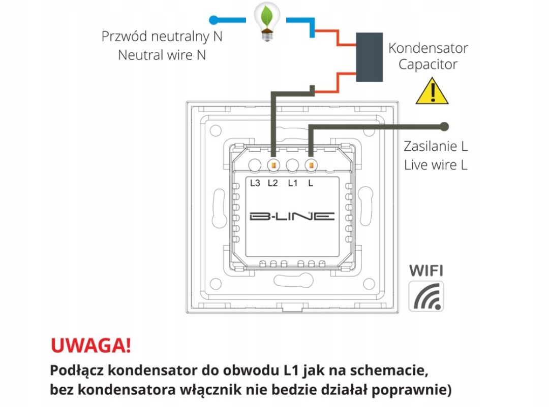 I fitted the smart switch to the installation without Neutral initially without the capacitor that was attached for proper operation without the Neutral wire and when I turn on the light the contactor starts the lighting comes on, but after a fraction of a second it turns off because the switch loses power and regains it after a while.