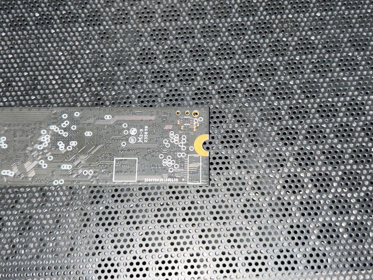 The sticker has been removed. I can see the PCB clearly. There are three exposed pads on the top edge of the drive — two larger ones with circle silkscreen markings, and one smaller pad beside them. I am attaching a photo.