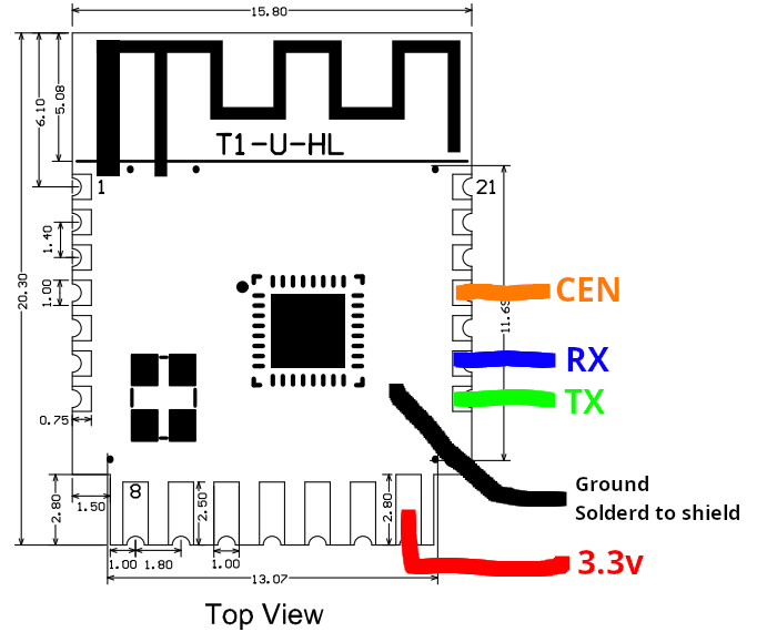 - EXTERNAL 3.3v power source (AMS1117 Voltage Regulator) (3.3v on serial adapter does not have sufficient power)