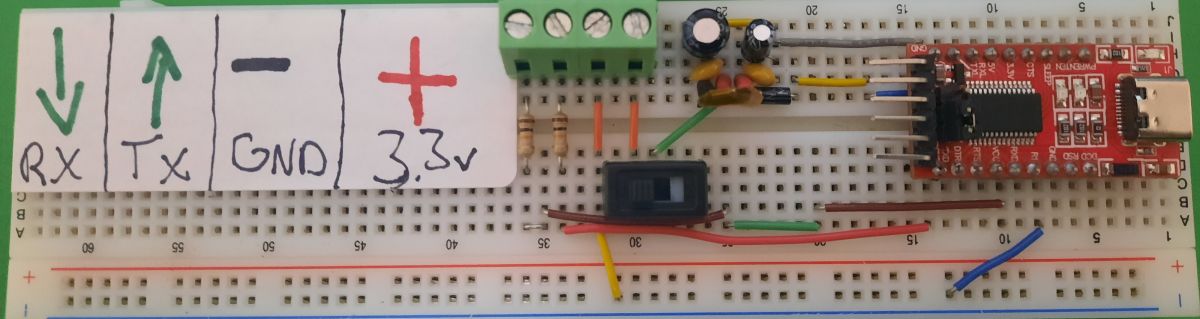 - If using 5v line from serial adapter a protection diode would be a good idea (I used a IN5819)
