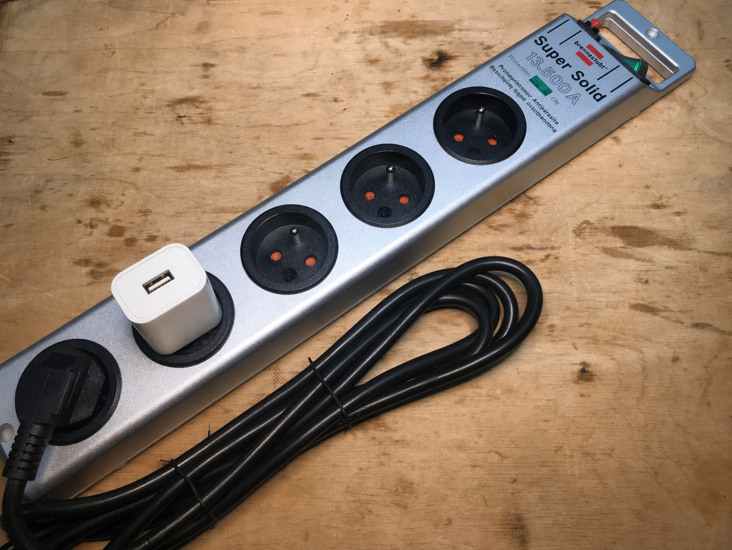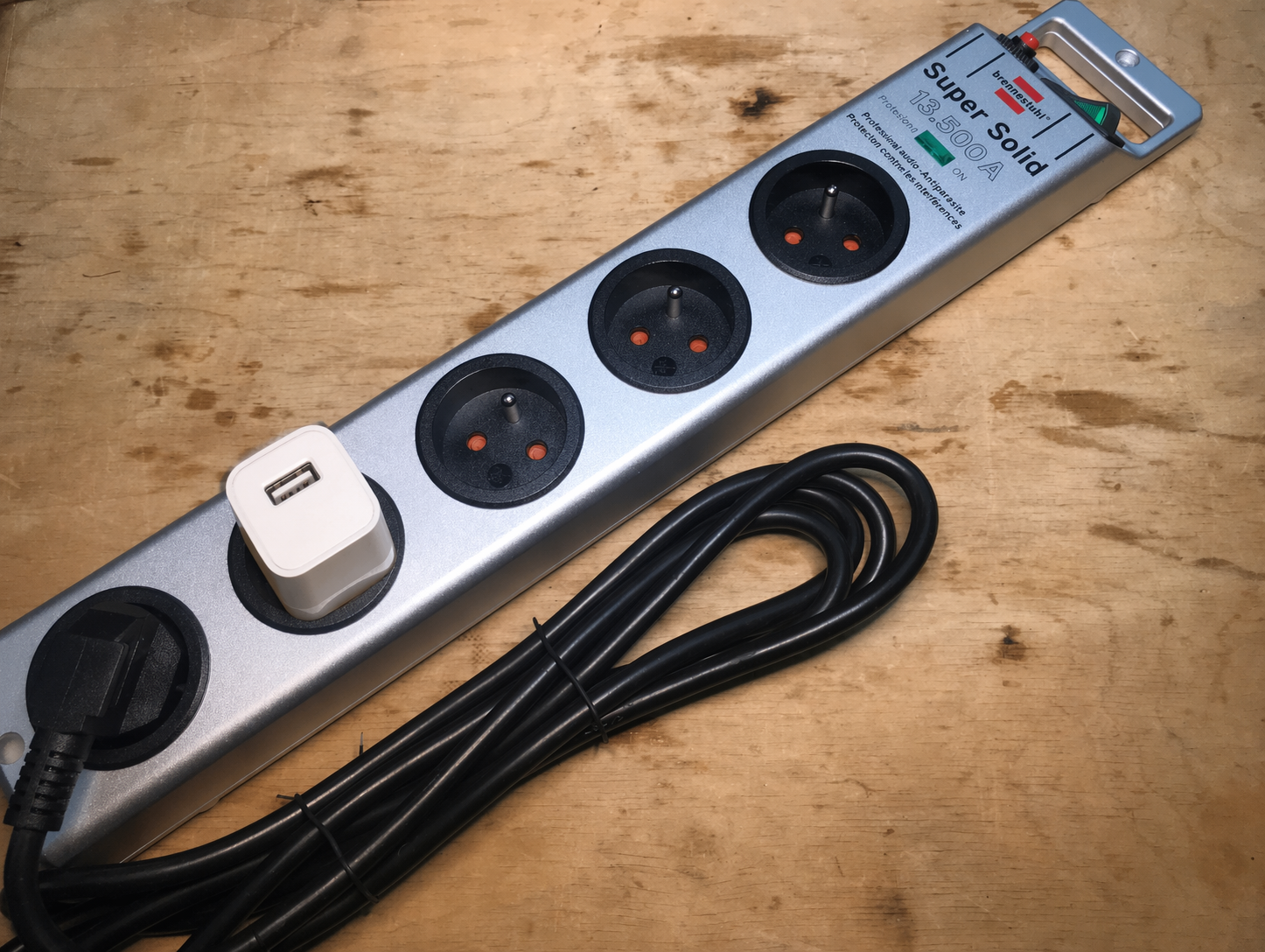 please plug a white phone charger with empty USB A slot into my power strip