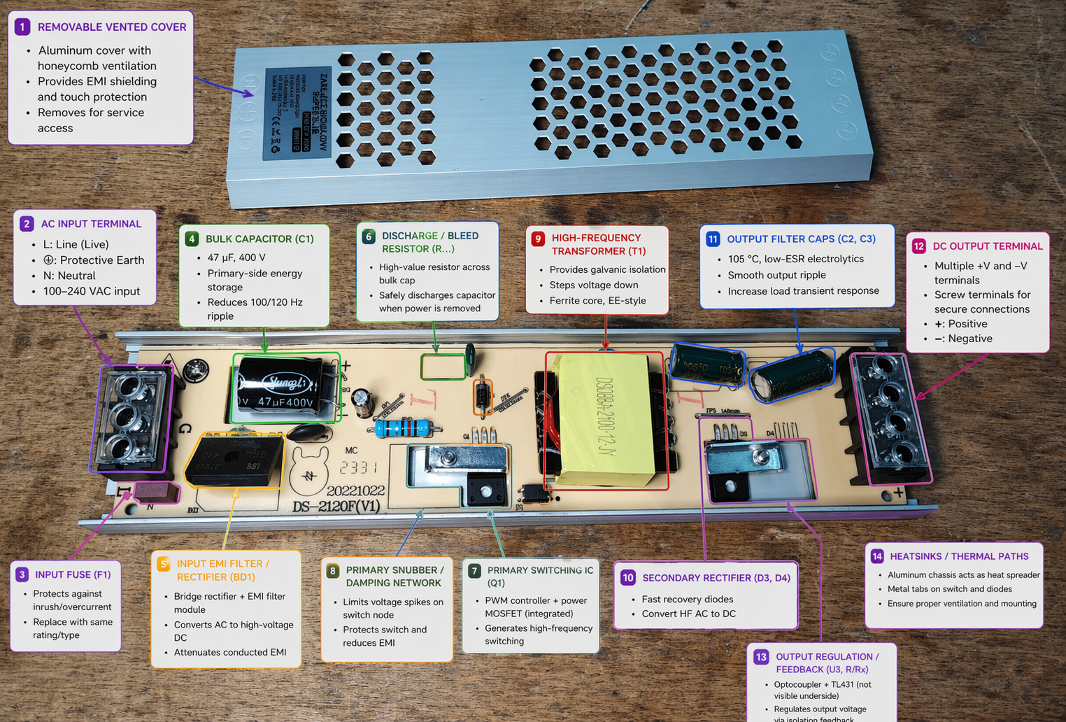 GPT-Image 2 likes to apply a block of text to the images, but the sense in the images is not there. Still that shorted EMI FILTER... fB pin on the ground... aND the whole bit with the reference voltage taken from ground.